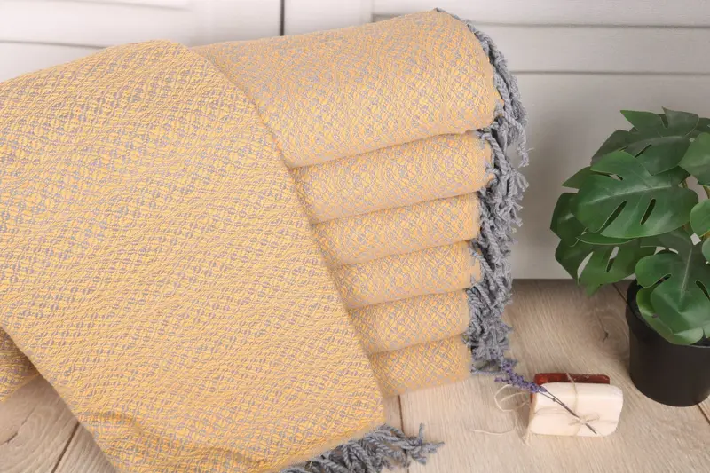 Characterized by exceptional quality, the towels are woven from organic Turkish cotton or natural linen, ensuring superior absorbency and durability. Measuring 40x71 inches or 100x180 cm and weighing 430 grams, these towels offer ample size and comfort. Resulting in a slight hand-weaving tolerance of 1-2.5cm, each towel is unique.