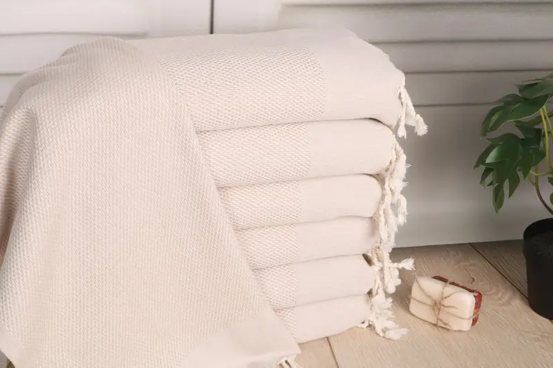 Characterized by superior fiber composition, this towel incorporates organic Turkish cotton or natural linen, ensuring exceptional absorbency. The 24"x44" dimensions provide adequate coverage and functionality, with a weight of 150 grams making it lightweight for easy handling. Tolerances in hand-weaving are within 1-2.5cm, resulting in a quality product.