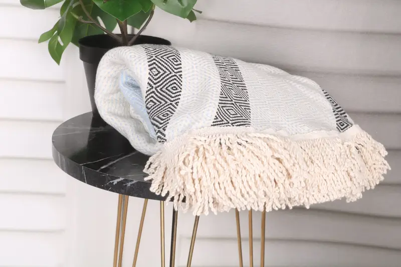 The organic Turkish cotton bath towels are characterized by their high absorbency and durable fiber composition, ensuring optimal water retention and quick drying. Measuring precisely 63x63 inches or 160x160 cm, each towel weighs approximately 600 grams, allowing for a robust hand-weaving tolerance of 1-2.5cm.