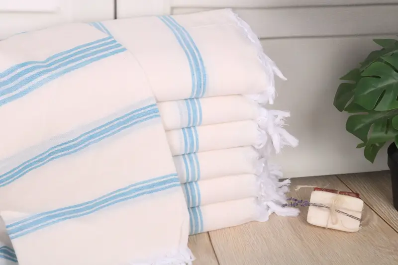 Characterized by a blend of organic Turkish cotton or natural linen, these towels ensure breathability and durability. Measuring precisely 70x40 inches or 100x180 cm, these towels maintain consistent quality with weight tolerances between 300-320 grams. Each towel is meticulously handcrafted, allowing for slight variations in size, typically within 1-2.5 cm.