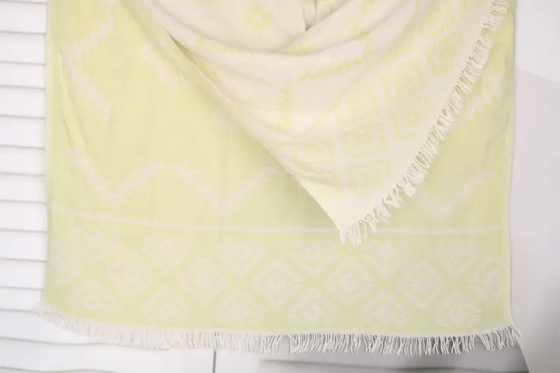 Characterized by a robust fiber composition, the Kilim Towel is crafted from organic Turkish cotton or natural linen, ensuring superior absorbency and durability. The towel is specified to measure 36x71 inches (90x180 cm) and weighs 320 grams, maintaining a consistent quality through its hand-woven nature with tolerances of 1-2.5cm. Resulting in a personalized item, the embroidery option permits customization with letters, initials, or logos.