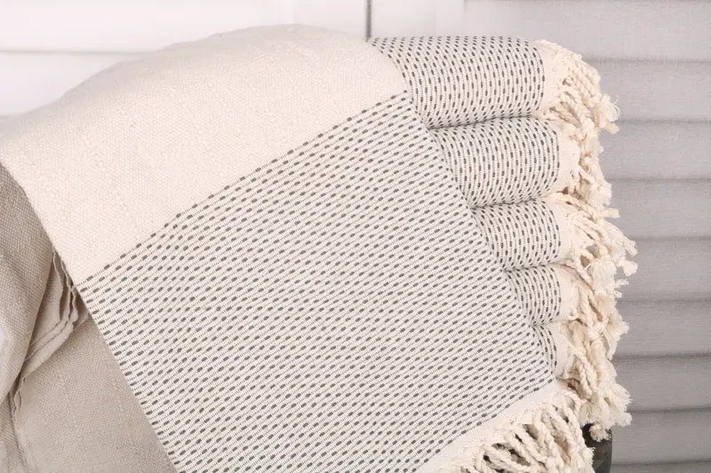 The towel is crafted from organic Turkish cotton or natural linen, characterized by its superior absorbency and durability. Ensuring softness and breathability, the towels come in dimensions of 40x71 inches or 100x180 cm, with a weight of 480 grams. Hand-weaving tolerances are within 1-2.5 cm.