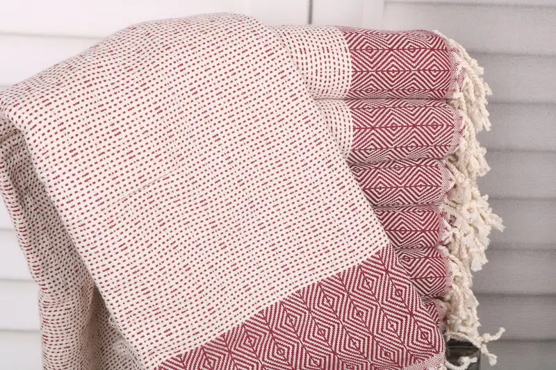 Turkish cotton and natural linen towels ensure a combination of durability and comfort. Characterized by a weight of 380 grams, these towels measure 40x71 inches or 100x180 centimeters, and exhibit a tolerance of 1-2.5cm in hand-weaving.