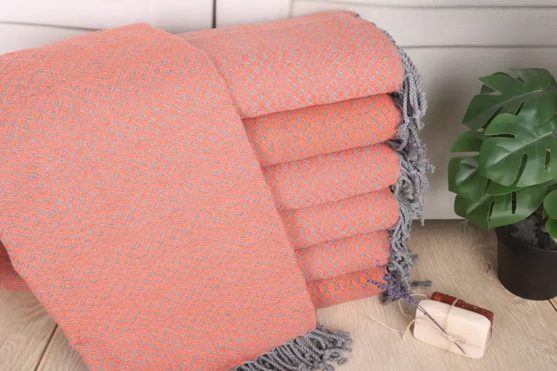 Organic Turkish cotton, if specified, ensures superior absorbency and durability for bath usage. Resulting in the towel's ability to efficiently absorb water, the product is sized at 40x71 inches (100x180 cm) with a weight of 450 grams. Hand-weaving tolerances may vary by up to 1-2.5cm.