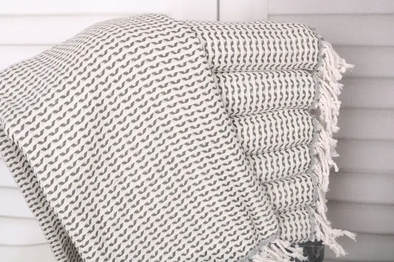 Characterized by high absorbency, the Turkish Bath Towel is crafted from organic Turkish cotton, ensuring optimal moisture wicking. The dimensions are 40x71 inches or 100x180 cm, with a weight of 430 grams. Hand-weaving tolerances allow for variations of up to 1-2.5 cm.