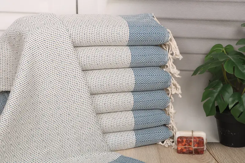 Constructed from organic Turkish cotton, these hand towels are characterized by their high absorbency and durability. Ensuring premium quality, they maintain their integrity through various washing cycles, resulting in consistent performance. Weighing 200 grams and measuring 36x18 inches (45x90 cm), these towels adhere to hand-weaving tolerances of 1-2.5 cm, maintaining aesthetic quality.