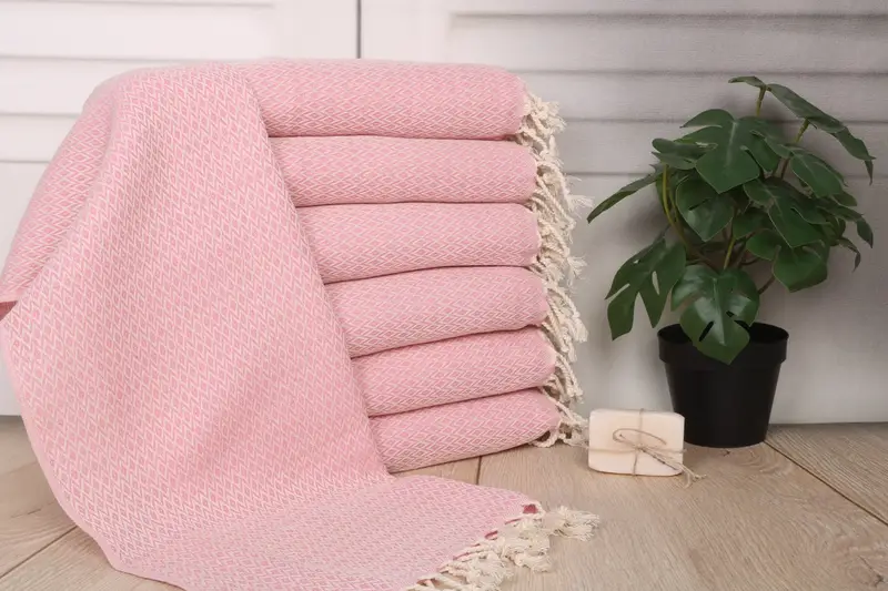 Organic Turkish cotton or natural linen, ensuring high absorbency and durability. The towels are characterized by meticulous hand-weaving, resulting in a tolerance of 1-2.5 cm in size. Measuring 40x20 inches or 50x100 cm, these towels weigh 100 grams each.