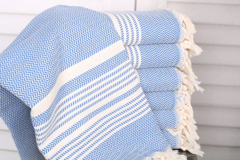 Turkish towels, characterized by their superior absorbency and durability, are meticulously crafted from organic Turkish cotton or natural linen, ensuring an eco-friendly and high-quality textile product. Each towel measures 40x71 inches (100x180 cm) and weighs approximately 400 grams, resulting in a generously sized and robust towel suitable for various uses. The hand-weaving process allows for minor tolerances of 1-2.5 cm in dimensions.