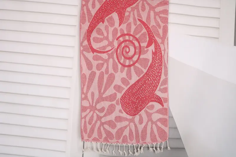 The towel is characterized by its organic Turkish cotton material, known for its superior absorbency and durability. Ensuring a soft and plush feel, the 18"x40" dimensions provide ample coverage for various uses. Each towel weighs 120 grams, providing a balance between lightweight and robust usage.