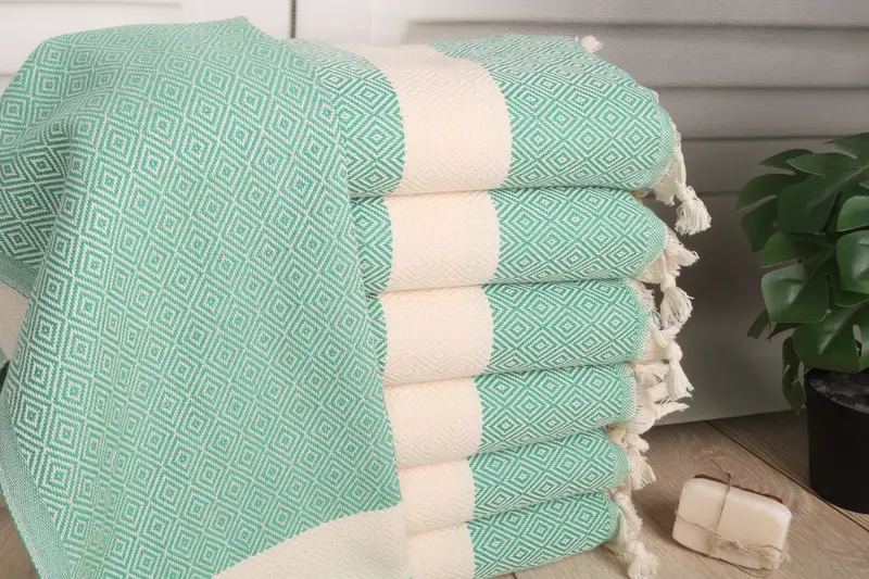 Materials utilized in these towels include Organic Turkish Cotton or Natural Linen, ensuring breathability and durability. Characterized by their absorbency, these towels guarantee efficient moisture management. Resulting in a lightweight product, each towel weighs precisely 115 grams, providing a balance between utility and comfort.