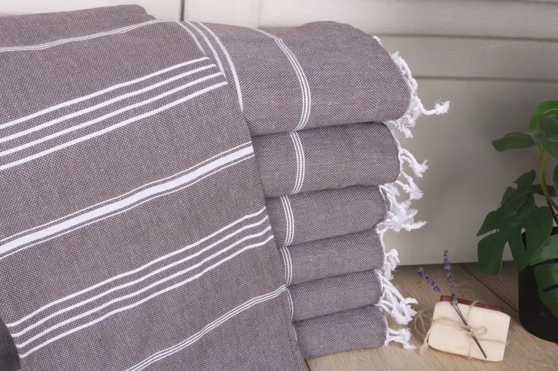 Characterized by superior absorbency, the 40x71 Inches Dark Brown Cotton Towel comprises organic Turkish cotton, ensuring soft texture and high durability. Weighing 280 grams, the towel's dimensions are precisely 70x40 inches or 100x180 cm. Tolerable deviations for hand-weaving measurements range between 1-2.5cm.