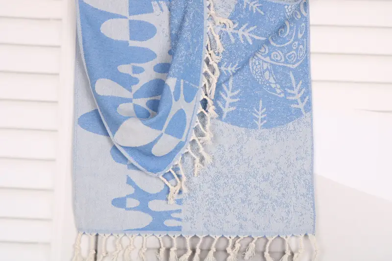 This hand towel, characterized by its organic Turkish cotton material, ensures high absorbency and durability. Measuring 36x18 inches or 45x90 cm, and weighing 120 grams, it is meticulously crafted allowing for a hand-weaving tolerance of 1-2.5 cm.