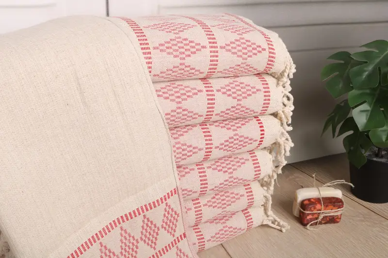 Characterized by its composition, the Turkish Towel Hand Towel is made from Organic Turkish Cotton or Natural Linen, ensuring a superior fiber quality that maximizes absorbency. Resulting in a lightweight yet durable fabric, it features dimensions of 40x20 inches or 50x100 centimeters, weighing precisely 120 grams. The towel is hand-woven with a tolerance of 1-2.5cm.