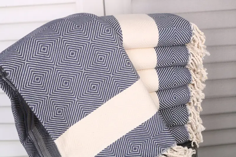 Characterized by superior absorbency, the 40x79 inches (100x200 cm) navy cotton towel is composed of organic Turkish cotton or natural linen, ensuring optimal moisture wicking and durability. This product weighs 520 grams, offering robust support for frequent use, with hand-weaving tolerances of 1-2.5 cm. Resulting in personalized beach towels, customization through embroidery is available, allowing buyers to specify fonts, colors, and placements. The shipping method utilizes DHL Express, FedEx, and UPS, delivering packages generally within 2-5...