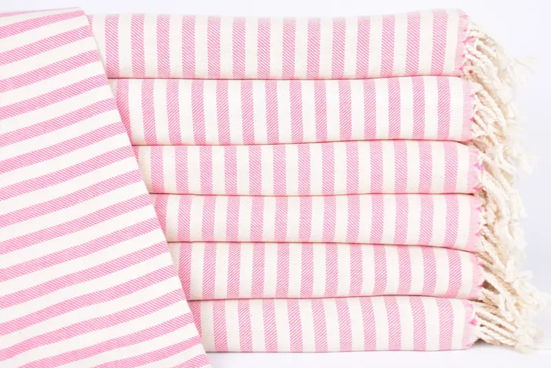 The Turkish hand towel is characterized by its material composition of 100 percent organic cotton, ensuring superior absorbency and softness. Each hand towel measures 24x40 inches or 60x100 cm, with a weight of 130 grams. Due to the nature of hand-weaving, there may be minor size variations of up to 1-2.5 cm.