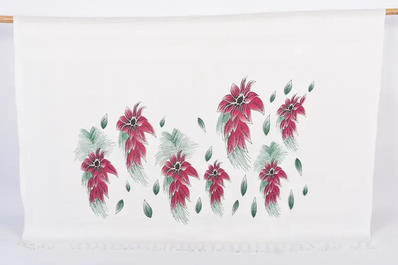 Characterized by 100 percent organic cotton material, this beach towel ensures superior absorbency, ideal for various applications including as a bath towel or tablecloth. Measuring 70x40 inches or 180x100 centimeters, it weighs 300 grams with hand-weaving tolerances of up to 2.5 centimeters.