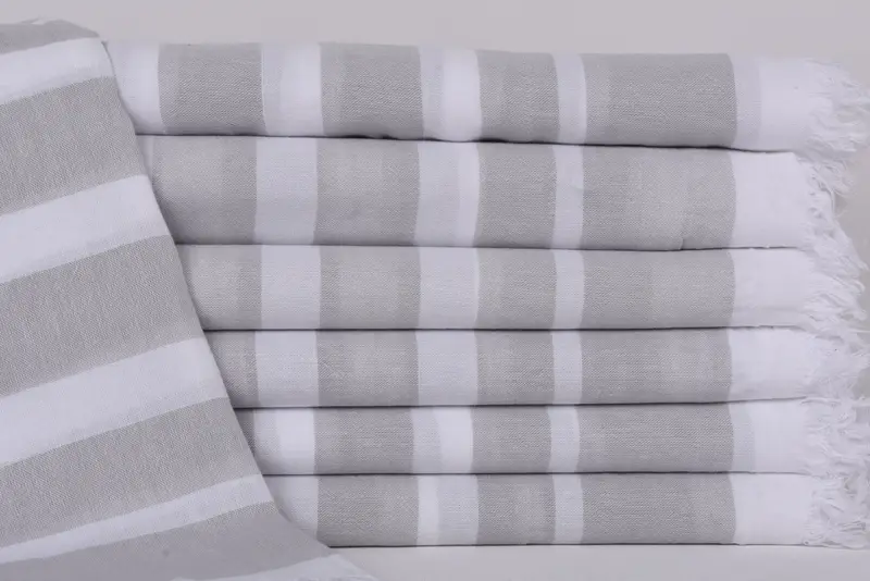 These beach towels are crafted from 100 percent organic cotton, ensuring a high-quality, sustainable material. Characterized by their robust absorbency and durability, these towels offer superior comfort and functionality. Measuring 63x40 inches or 160x100 centimeters, each towel weighs 180 grams or 6.3 ounces, with a weaving tolerance of up to 1-2.5 centimeters.
