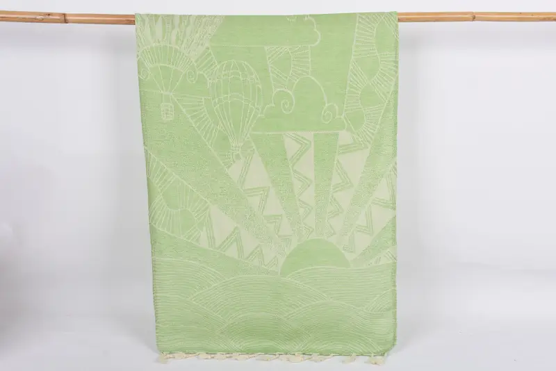 The hand towel is made from 100% organic cotton, ensuring high absorbency and breathability. Characterized by dimensions of 36 x 18 inches (90 x 45 cm), with a weight of 100 grams, it is hand-woven with tolerances of up to 1-2.5 cm.