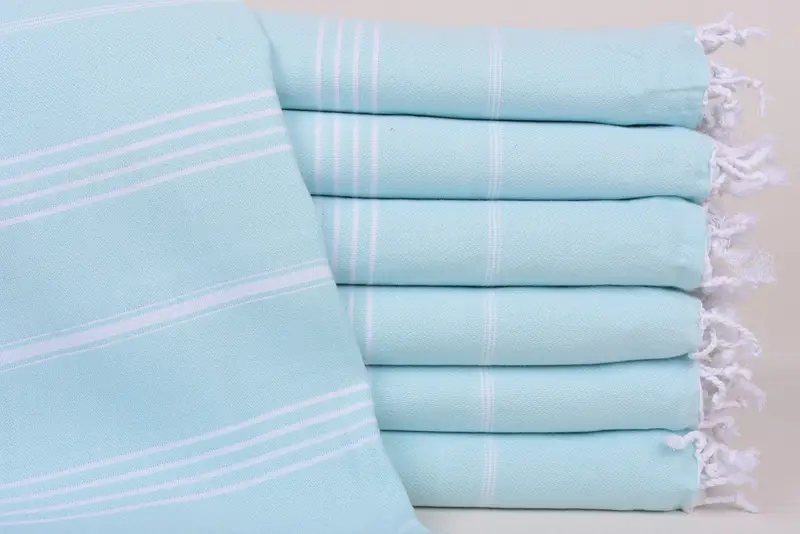 The 70"x40" mint striped towel is characterized by its fiber composition of 100 percent organic cotton, ensuring excellent absorbency and high-quality hand weaving. The towel measures 70x40 inches (180x100 centimeters) with a weight of 280 grams, resulting in a towel that may slightly vary due to weaving tolerances of 1-2.5 centimeters. Customers can opt for embroidery customization, allowing personalization through monogram letters, colors, and fonts, further enhancing the appeal of this product. Towels are pre-shrunk, guaranteeing consistency...
