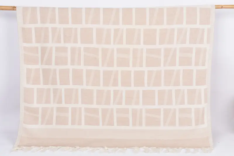 Dimensions and weight are meticulously calculated, providing a consistent product quality. The towel's hand-weaving process allows for minor size discrepancies, maintaining the handmade charm.
