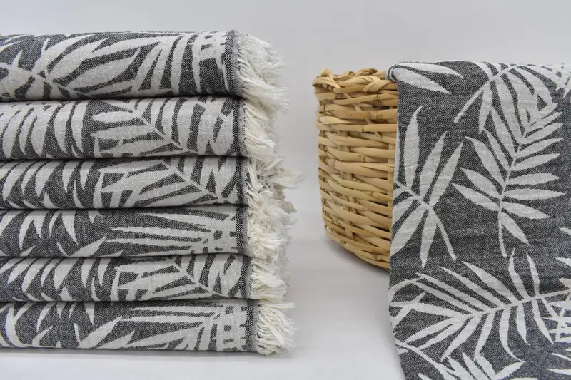 The 63"x40" Black Floral Patterned Towel is composed of 100 percent Organic Cotton, ensuring superior absorbency and softness. Characterized by its dimensions of 160x100 centimeters, weighing approximately 290 grams, this towel may have minor variations due to its hand-weaving process.
