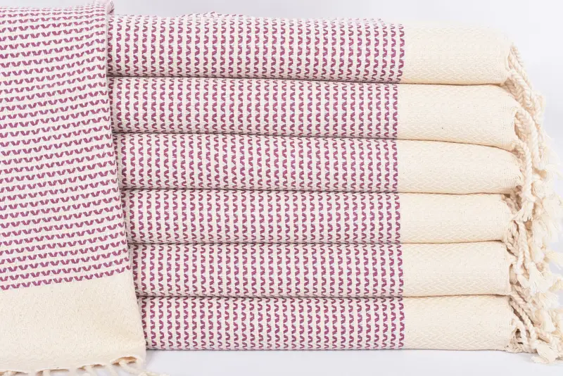 Crafted from 100 percent organic cotton, these Turkish towels are characterized by their exceptional absorbency and durability. Ensuring a high-quality product, the towels exhibit a weight of 140 grams, with dimensions of 40x20 inches or 100x50 cm, with a tolerance of up to 2.5 cm due to hand-weaving techniques.
