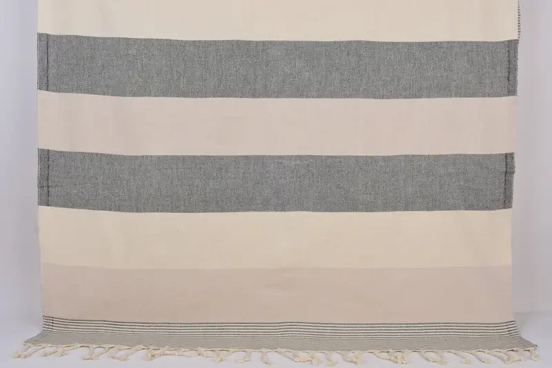 Handcrafted using 100 percent organic cotton, ensuring hypoallergenic and environmentally friendly attributes. This Turkish bath towel is characterized by its high absorbency, measuring 70"x40" inches or 180x100 cm. The hand-weaving process allows for tolerances of up to 1-2.5cm in size.