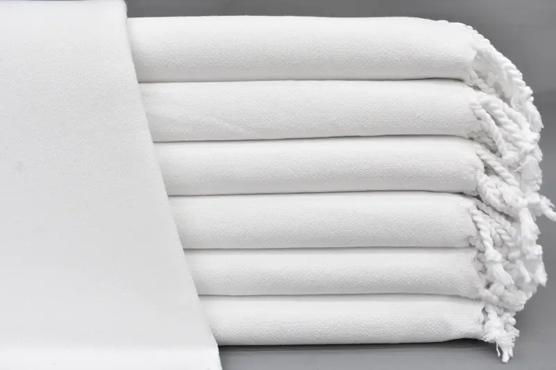 Characterized by exceptional absorbency, the Turkish towel comprises 100% natural cotton, ensuring optimal water retention and quick drying. The wholesale towels measure 70" x 40" inches or 180cm x 100cm, with a weight of 12-14 ounces equating to 350-450 grams. Variations in size are possible due to hand-weaving, typically within a tolerance of 1-2.5 centimeters.