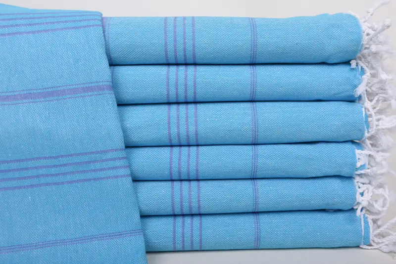 Turkish bath towels are characterized by their material, which comprises 100 percent organic cotton, ensuring superior absorbency and eco-friendliness. Measuring 70x40 inches or 180x100 cm, these towels weigh approximately 280 grams and maintain a tolerance of 1-2.5 cm due to hand-weaving techniques. Personalized through embroidery, each towel can be customized with names or dates, adding a special touch to various occasions, including weddings and bachelorette parties.