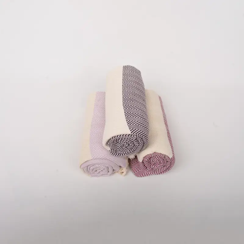Turkish Peshtemal Towels ensure high quality by utilizing 100% Organic Cotton fibers. This composition results in a lightweight yet highly absorbent material, offering superior comfort and functionality. Each Turkish Towel measures 70" x 40" inches or 180cm x 100cm, with a weight of 14-18 ounces (400-500 grams), and may vary by up to 2.5 cm due to hand-weaving techniques.