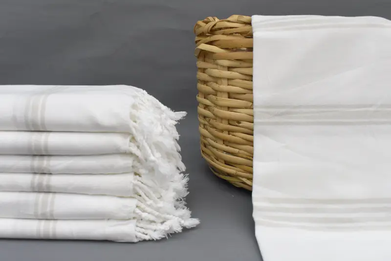 The Striped Pool Towel is characterized by its 100% natural cotton composition, ensuring high absorbency and durability. This Turkish blanket towel, handmade in Turkey, exhibits a weight of 7-8 ounces (200-250 grams) and dimensions of 70 inches by 40 inches (180 cm by 100 cm), with potential slight variations due to hand-weaving tolerances. The product offers a blend of traditional craftsmanship and functionality, resulting in a versatile item suitable for various uses.