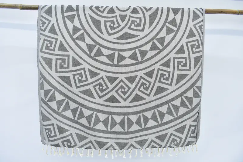 Turkish towels are characterized by their 100% natural cotton composition, ensuring high absorbency and durability. These towels, crafted through meticulous hand-weaving techniques, exhibit dimensions of 70"x40" inches or 180cm x 100cm, with a slight tolerance of 1-2.5cm due to the weaving process. Weighing between 200-400 grams, these towels provide a soft yet sturdy texture suitable for various uses.
