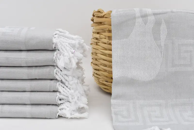 The towel is characterized by its material, consisting of 100% natural cotton, ensuring soft texture and superior absorbency. Measuring precisely 70 inches by 40 inches, equivalent to 180 centimeters by 100 centimeters, it accommodates slight variations of up to 2.5 centimeters due to the hand-weaving process. The weight of the towel is 8 to 10 ounces, or 250 to 300 grams.