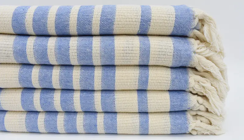 Characterized by superior absorbency, this beach towel is crafted from 100 percent organic cotton, ensuring a soft texture and sustainable choice. Resulting in dimensions of 70x34 inches or 180x85 cm, the towel weighs 320 grams or 11.3 ounces. Due to hand-weaving techniques, there may be slight variations of up to 2.5 cm.