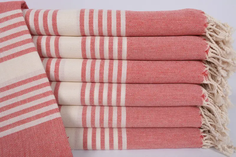 The Turkish towels are fabricated using 100% organic cotton, ensuring exceptional absorbency and a soft texture. Characterized by their dimensions of 67x40 inches (170x100 cm) and a weight of 350 grams, these towels may have a slight variance of 1-2.5 cm due to hand-weaving techniques.