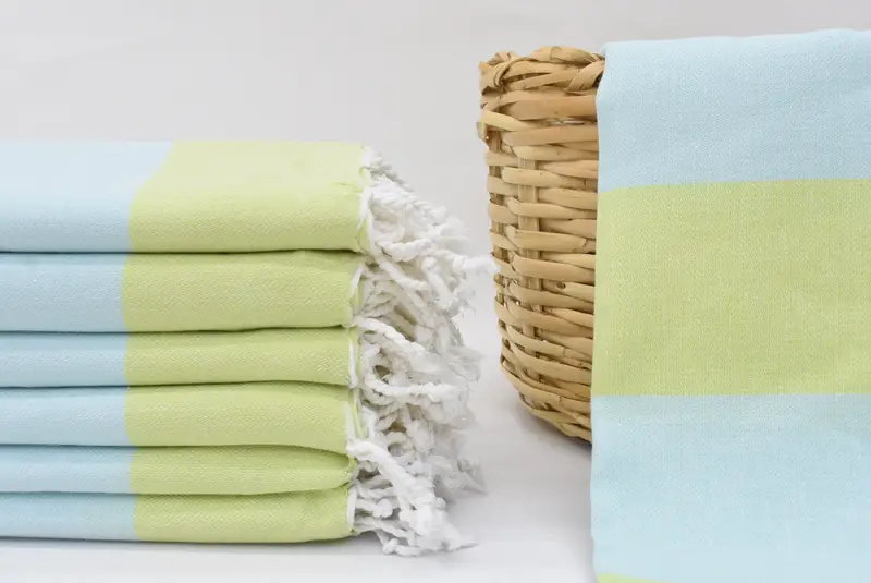 Turkish cotton, ensuring superior absorbency and durability, is characterized by its natural fibers. The towel's dimensions measure 70" x 36" inches or 180 cm x 90 cm, with a tolerance of up to 1-2.5 cm due to the hand-weaving process, and weighs between 240-300 grams. The resulting product provides comfort and flexibility while maintaining its structural integrity.