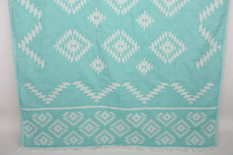 The Benetton Green Kilim Towel is meticulously handcrafted, allowing for a weaving tolerance of up to 1-2.5 cm. Pre-shrunk prior to sale, it is designed to maintain its shape and size. Each towel can be personaliz...