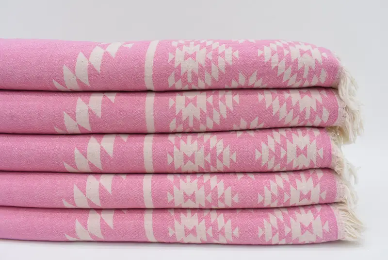 The Dark Pink Turkish Beach Towel is crafted from 100% natural cotton, ensuring exceptional absorbency and softness. Characterized by a hand-weaving process, it features dimensions of 66 inches by 36 inches (170 cm by 90 cm), with a tolerance of 1-2.5 cm due to manual craftsmanship. Each towel weighs between 280 and 320 grams, providing a lightweight yet substantial feel.