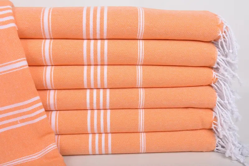 Produced from 100% organic cotton, the Turkish towel ensures superior absorbency and durability. Characterized by its dimensions of 70x40 inches or 180x100 centimeters, the towel weighs 300 grams or 10.6 ounces. Hand-woven with precision, minor variances of up to 1-2.5 centimeters may occur.