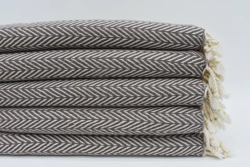 Handcrafted Turkish Peshtemal Towels are characterized by their 100% natural cotton composition, ensuring high absorbency and durability. Dimensioned at 70" x 40" inches or 180cm x 100cm, the towels may vary by 1-2.5cm due to hand-weaving. Weighing between 350-400 grams, they provide substantial coverage and comfort.