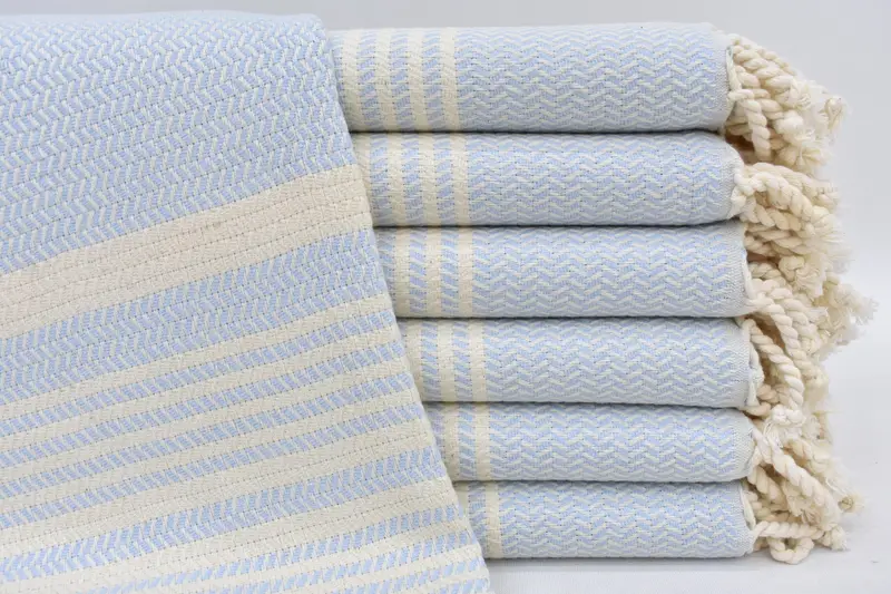 Turkish Bath Towels, characterized by their fiber composition, are crafted from 100% Natural Cotton, ensuring superior absorbency and gentle touch. Resulting in a towel size of 70" x 40" inches or 180 cm x 100 cm, the weight is between 12-14 ounces (360-420 grams). Hand-weaving tolerances may result in slight variations of up to 2.5 cm in dimensions.