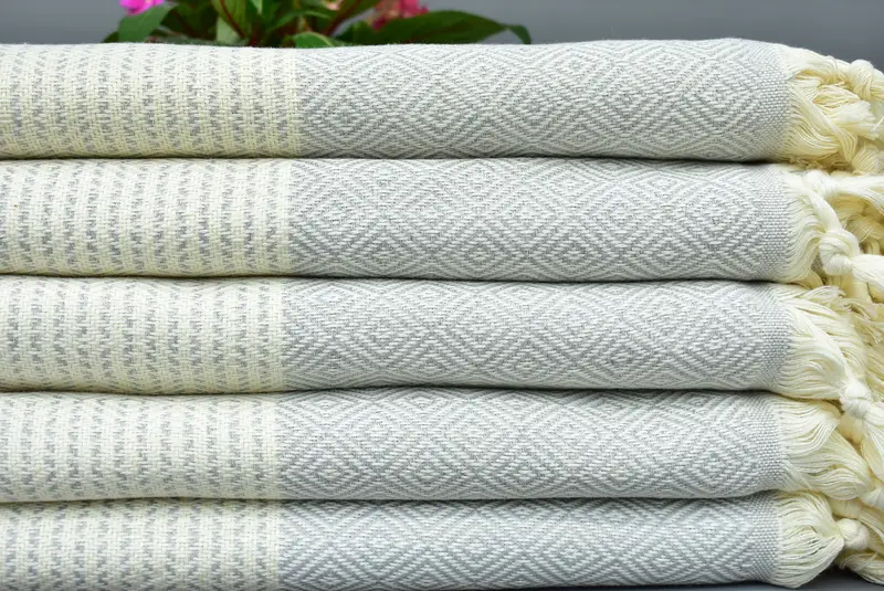 Ensuring optimal absorbency, the Turkish Beach Towel is characterized by its composition of 100% natural cotton, sourced directly from Turkey. Resulting in an elegant gray hue, it ensures enhanced durability and comfort. Measuring 72 inches by 40 inches (180cm x 100cm) with hand-weaving tolerances of 1-2.5 centimeters, the towel provides a versatile solution for beach, bath, and pool use. The weight of the towel ranges from 10 to 14 ounces (300-400 grams), ensuring both lightweight portability and substantial absorbency.