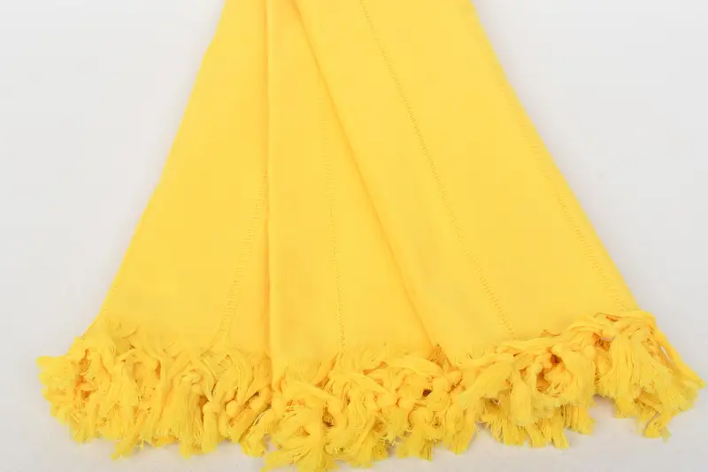 The towel is fabricated from 100% natural cotton, ensuring superior absorbency and softness. Characterized by its dimensions of 70 inches by 40 inches (180 cm by 100 cm), the product presents a weight of 10-11 ounces (300-330 grams), with a hand-weaving tolerance of up to 2.5 centimeters. Embroidered customizations are unavailable for this item, and pre-shrinking is not required, maintaining the integrity of its textile integrity.