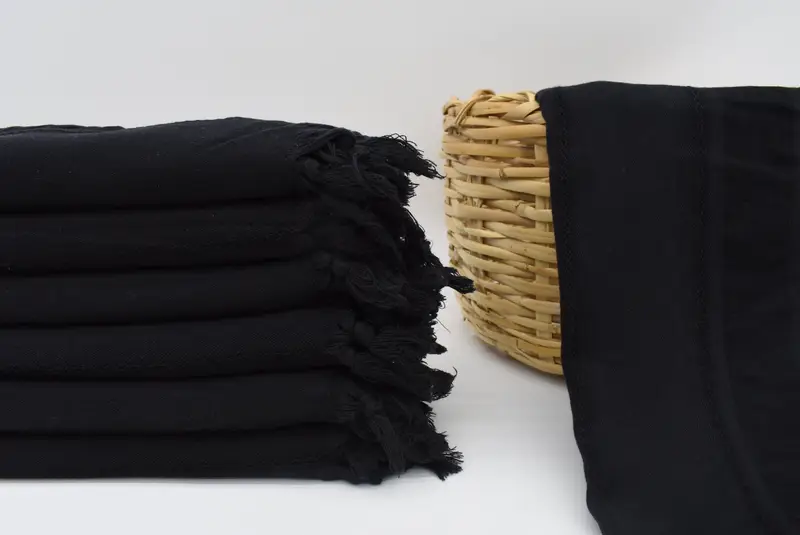 Handcrafted Turkish Peshtemal Towels are characterized by their 100% natural cotton composition, ensuring superior absorbency and durability. The specified dimensions are 70" x 40" inches or 180cm x 100cm, with possible variations of up to 2.5cm due to hand-weaving techniques. Each piece weighs between 10-11 ounces or 300-330 grams, resulting in a lightweight yet robust textile.