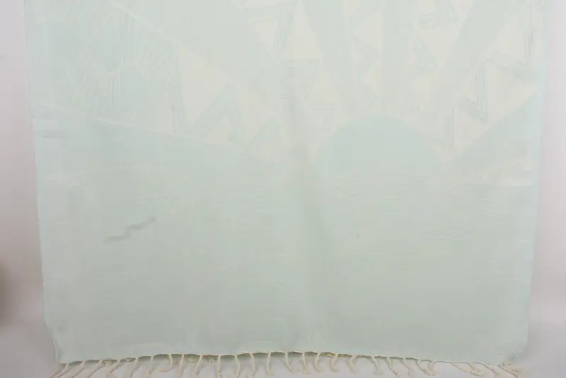 The product comprises a beach towel characterized by its 100% organic cotton composition, ensuring high absorbency and comfort. Dimensions of the towel are 67x40 inches or 170x100 centimeters, with a tolerance of 1-2.5 cm due to hand-weaving. The towel weighs 320 grams, providing durability and quality for various uses.