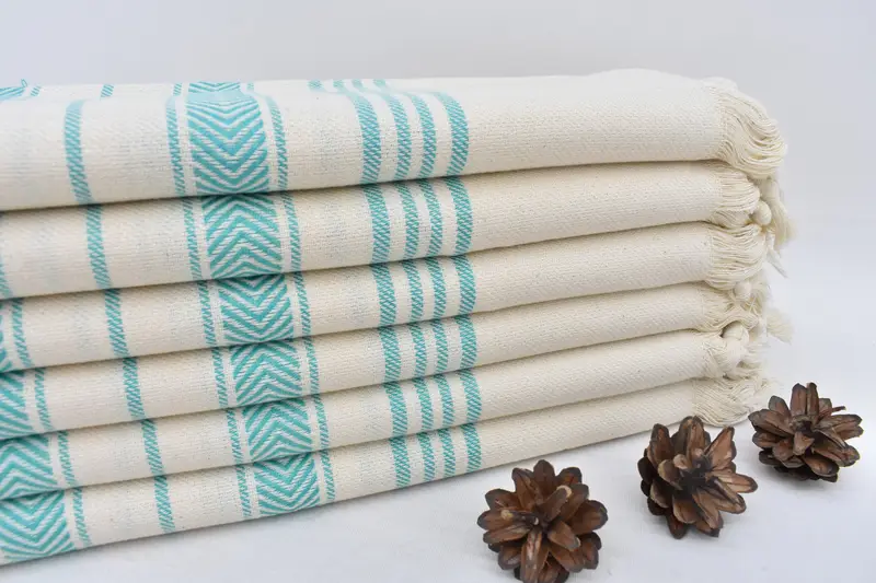 Characterized by the 100% natural cotton material, this Turkish towel offers excellent absorbency and durability. Ensuring a high-quality texture, the towel is meticulously woven by hand in Turkey, resulting in a product that may vary slightly by up to 1-2.5 cm due to hand-weaving tolerances. Measuring 70 inches by 40 inches (180 cm by 100 cm), the towel weighs between 8 to 10 ounces (240 to 300 grams), providing a lightweight yet robust option for daily use.