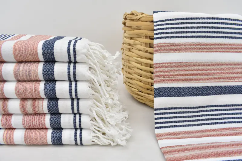 The towels are engineered from 100 percent organic cotton, ensuring superior absorbency and softness. Characterized by a robust fiber composition, these towels are designed to endure repeated use while maintaining their texture and color. Dimensions for the towels are 70x40 inches or 180x100 centimeters, with a tolerance of 1-2.5 centimeters due to hand-weaving. Each towel weighs 300 grams, offering durability and comfort.