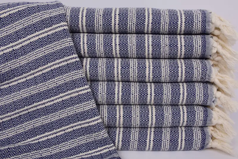 The Turkish tea towel is characterized by its fiber composition, ensuring high absorbency and durability. Resulting from 100 percent organic cotton, its woven structure provides superior quality and longevity. The dimensions of the tea towel are 32x18 inches or 80x45 cm, with a tolerance of 1-2.5 cm due to hand-weaving techniques.
