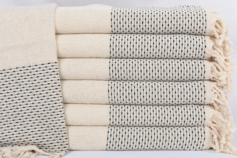 Characterized by its organic cotton material, ensuring superior absorbency, these towels are 100% organic cotton. Each towel measures 40x20 inches or 100x50 centimeters with a weaving tolerance of 1-2.5 centimeters. Due to the hand-weaving process, actual dimensions may vary slightly.