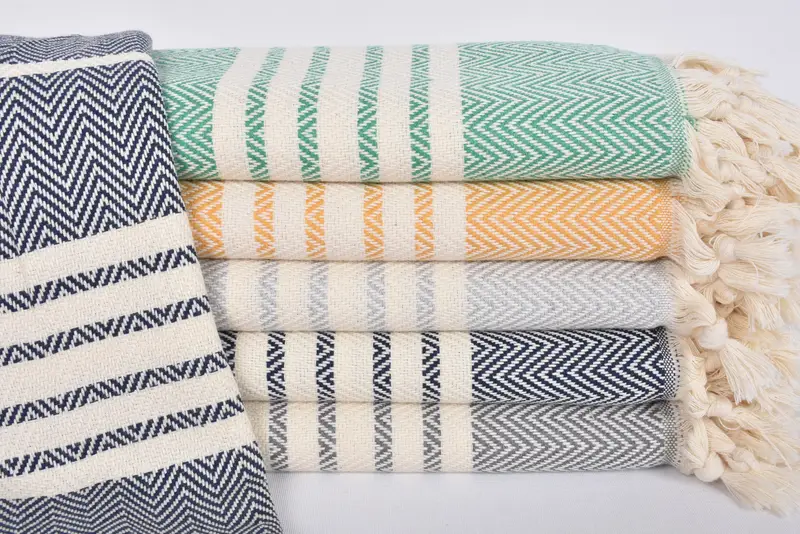 Turkish towels are composed of 100 percent organic cotton, ensuring high absorbency and softness. Characterized by a dimension of 40x20 inches or 100x50 cm, with a tolerance of 1-2.5 cm due to hand-weaving, they weigh 110 grams or 3.9 ounces. Embroidery customization is available, with a delivery time of 3-5 days. Pre-shrunk towels are shipped worldwide via DHL Express or FedEx, with returns not accepted for personalized items.